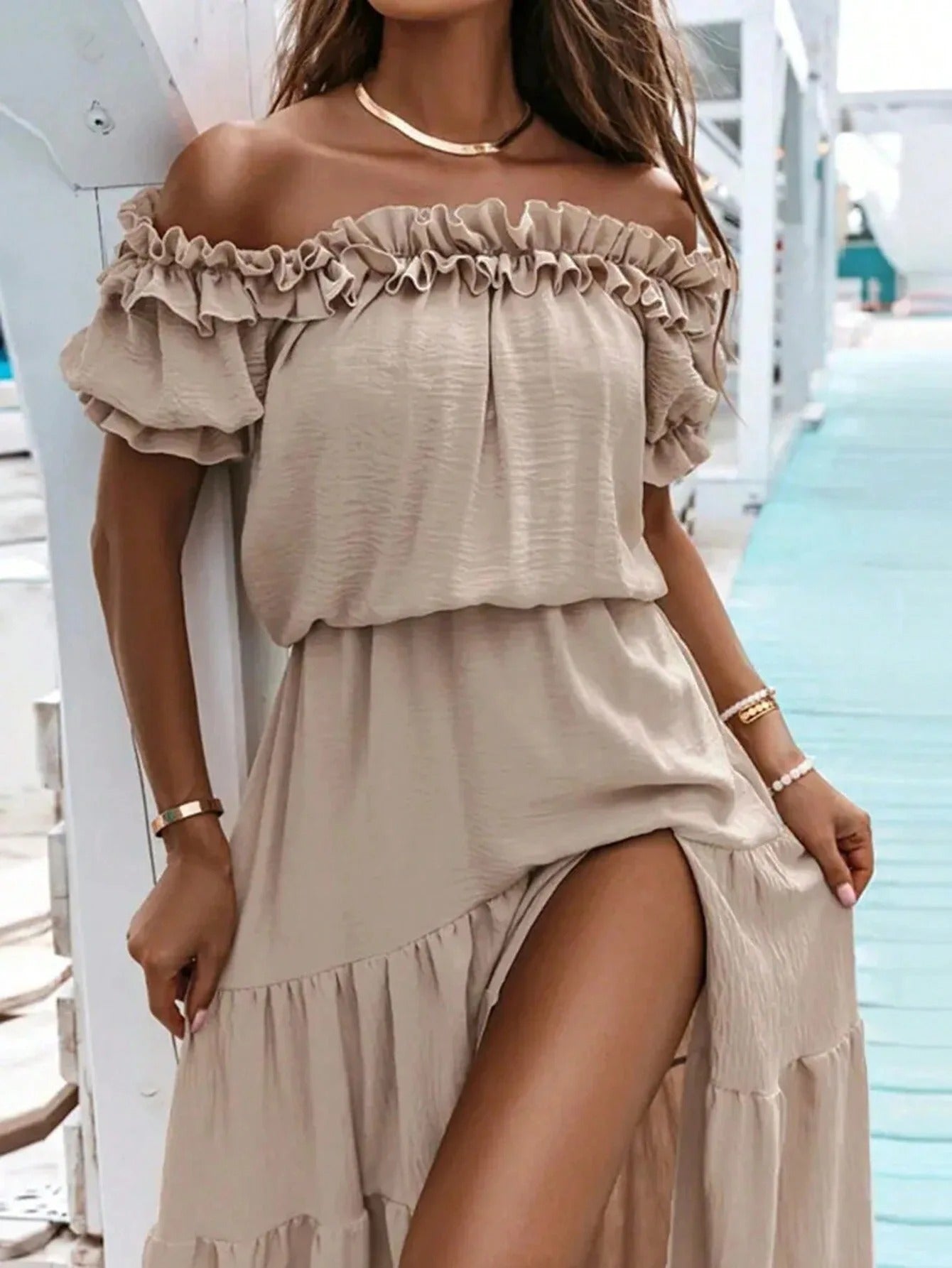 Vivuna - Abito estivo senza spalline con spacco